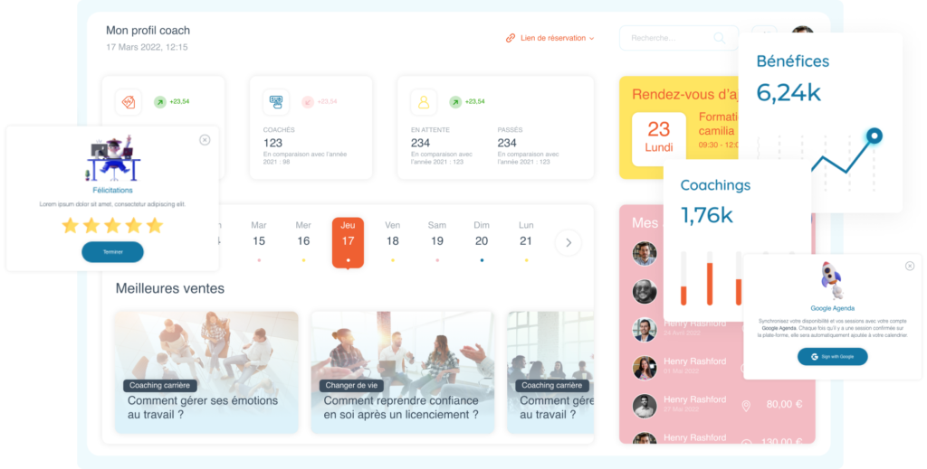 Gardez un œil en temps réel sur votre chiffre d’affaires, vos ventes en ligne et vos sessions de coaching ou formation.