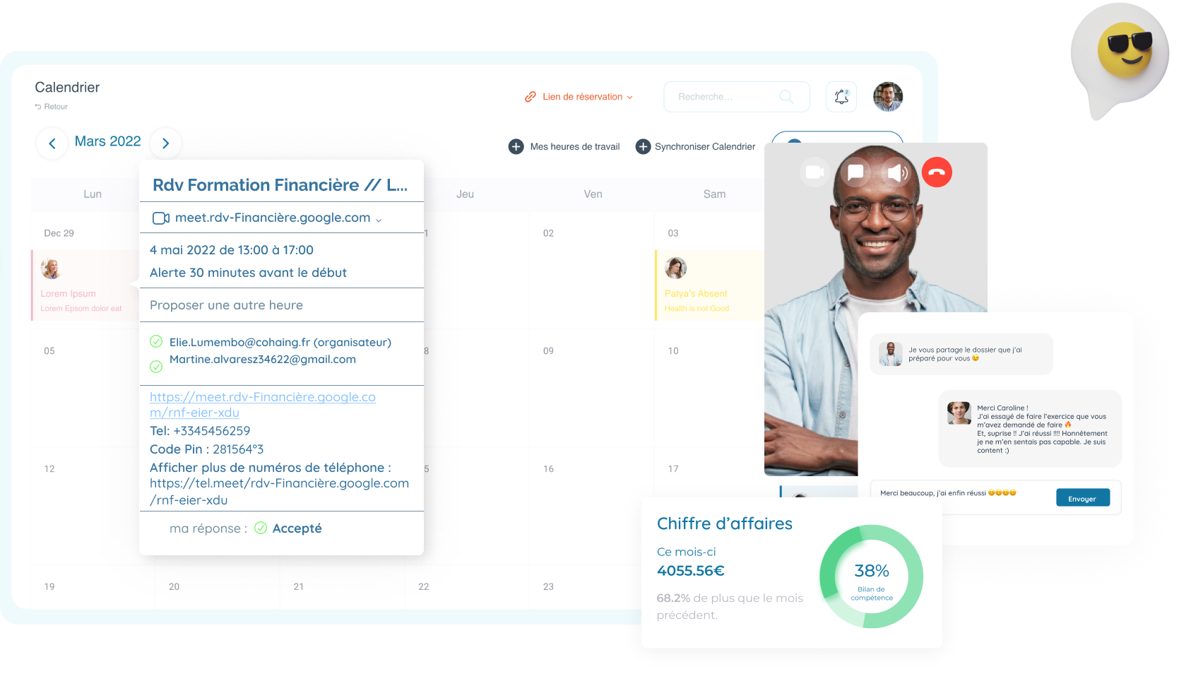 Depuis votre espace messagerie, gérez simplement vos échanges avec vos clients et partagez-leurs vos documents (questionnaires, contrats, exercices…). Nous sommes là pour faciliter votre quotidien 😌