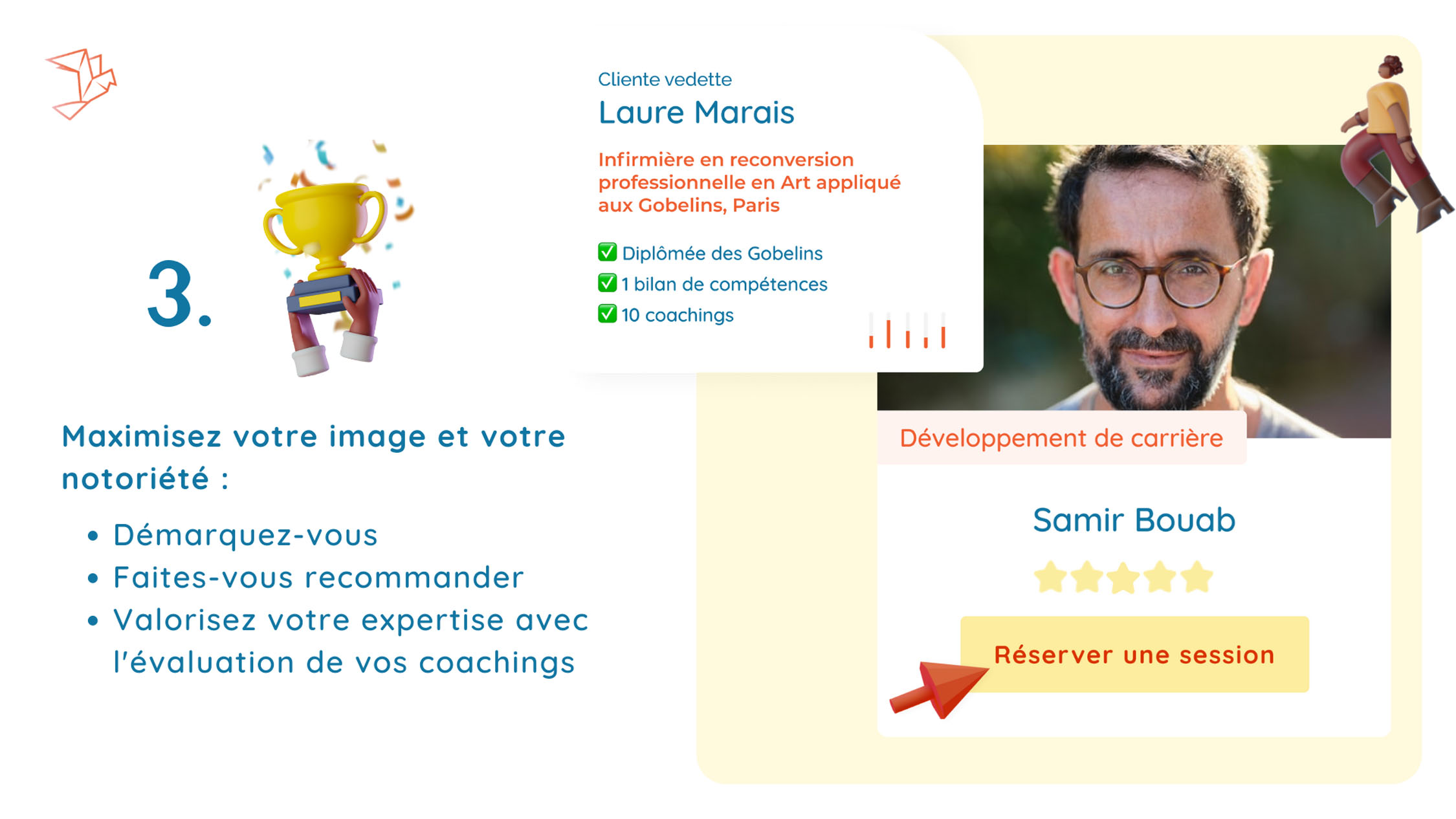 Nous avons constaté que le marketing était un point sensible pour certains coachs et formateurs. Alors, nous avons créé MASTER🕊️COACH, votre partenaire au quotidien pour faire décoller votre activité. Voici trois fonctionnalités qui vous permettrons de réussir, sans pour autant être un spécialiste du marketing.